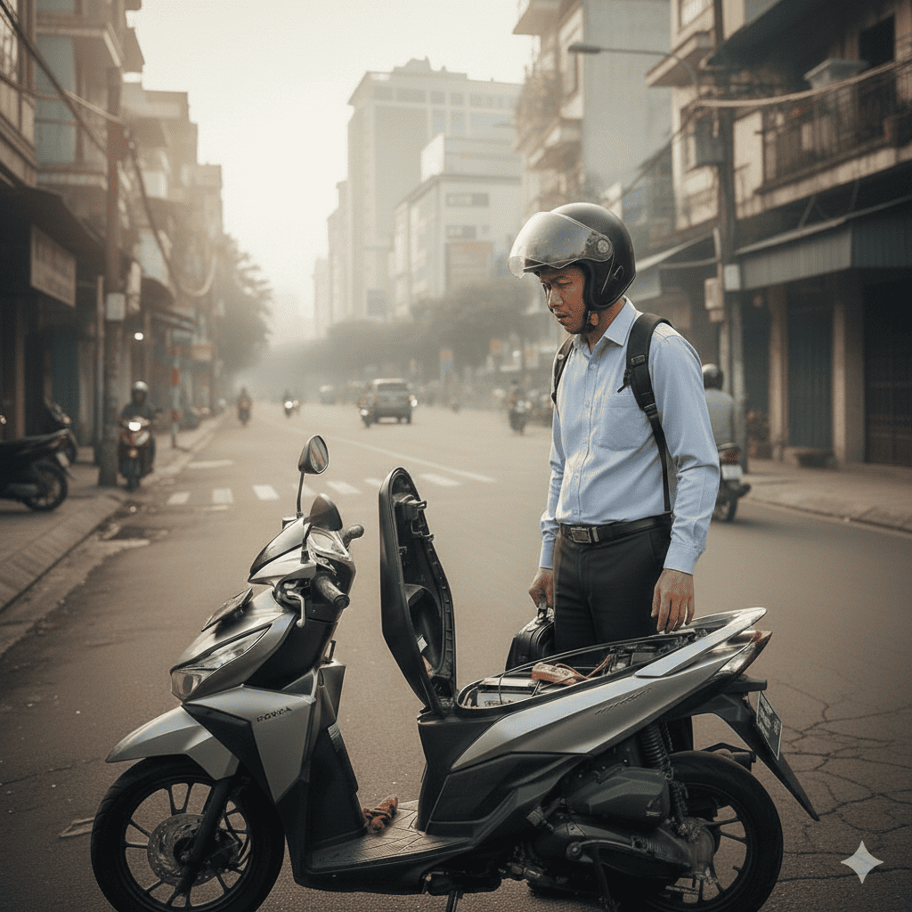 - Motor: coba gunakan kick starter (jika tersedia)